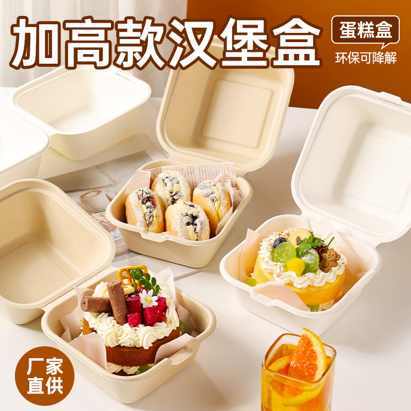 パック弁当バーガーボックス分解性パルプ使い捨てケーキ紙箱ベーキングサンドイッチ高さバーガーボックス