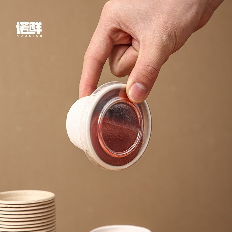 使い捨てディスペンサーカップ分解性パルプソースカップ調味料カップ試食カップ蓋付きテイクアウトボウル箱