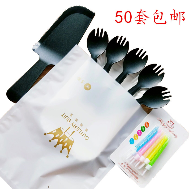 ケーキカトラリーセット使い捨てケーキカトラリーセットキャンドルプレートフォーク誕生日ケーキカトラリー50セット卸売