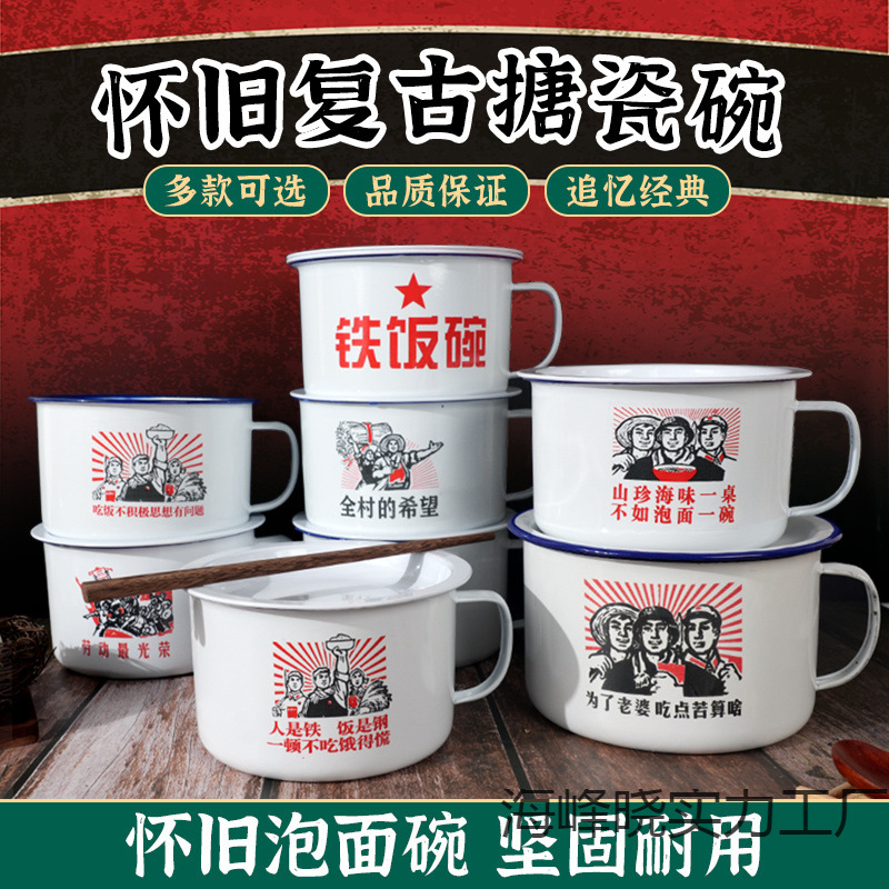 昔ながらのエナメルボウル インスタントラーメンボウル 蓋付き 特大インスタントラーメン パーソナライズされた学生寮 ファーストフードカップ ノスタルジックなボウル お手入れ簡単