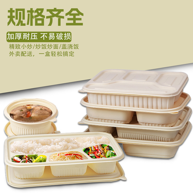 ♔ 生分解性弁当箱 コーンスターチ弁当箱 3コンパートメントと2コンパートメントのテイクアウト包装箱 使い捨て弁当箱