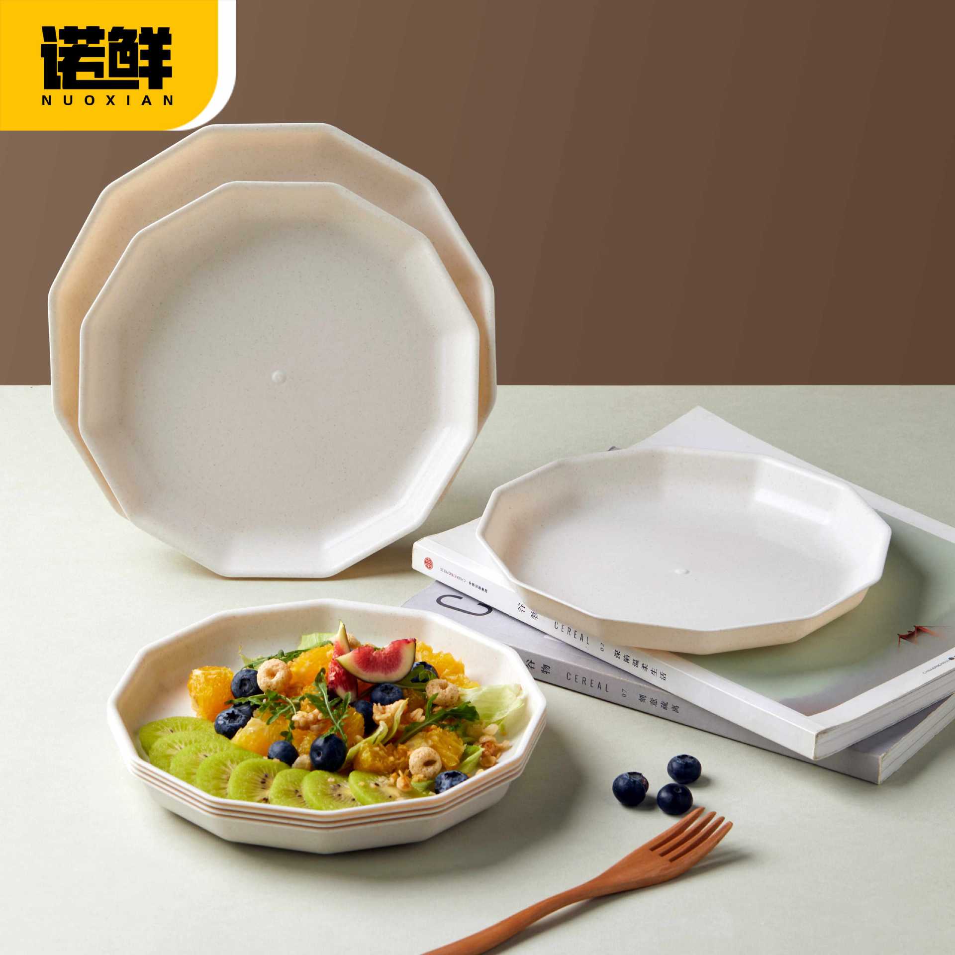 ♔ 使い捨て籾殻多角形蓮の花プレート厚みのある耐熱皿ナッツフラワーシュガープレート新年ホームディナーワイン
