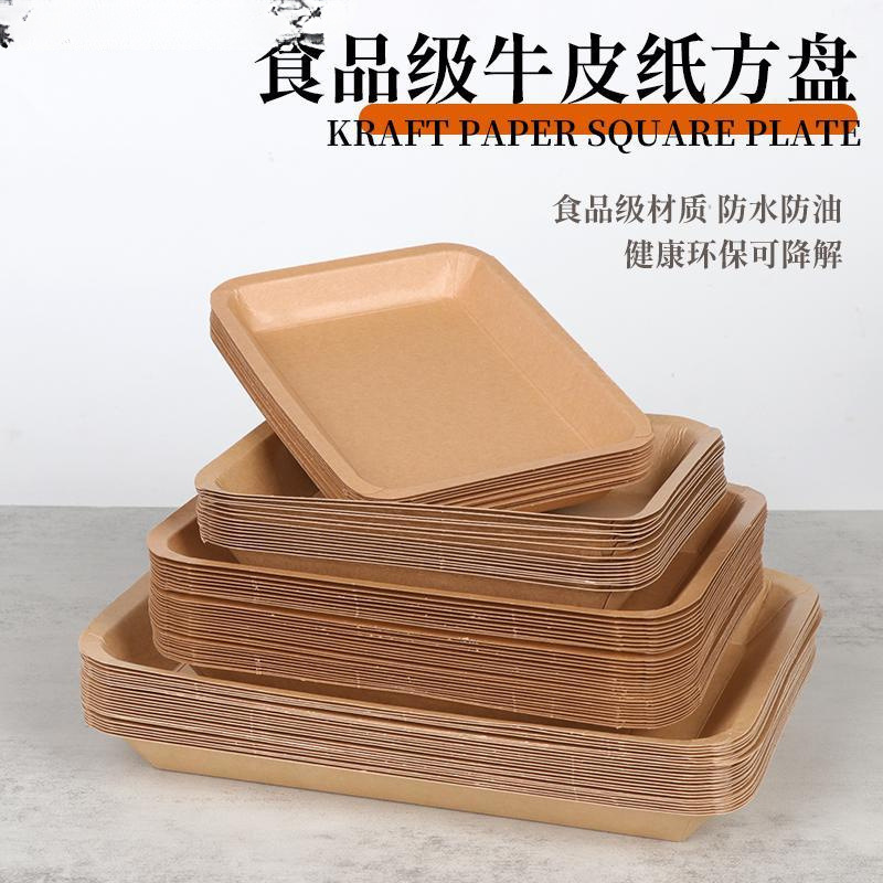 使い捨てクラフト紙ランチボックス正方形紙皿スナックスナックトレイフレッシュプレート増粘フルーツバーベキュープレート大