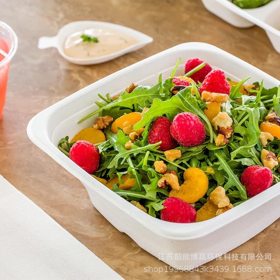 使い捨て軽食サラダボックス、テイクアウト包装、サトウキビパルプ弁当箱、電子レンジ対応、生分解性ファーストフード弁当箱