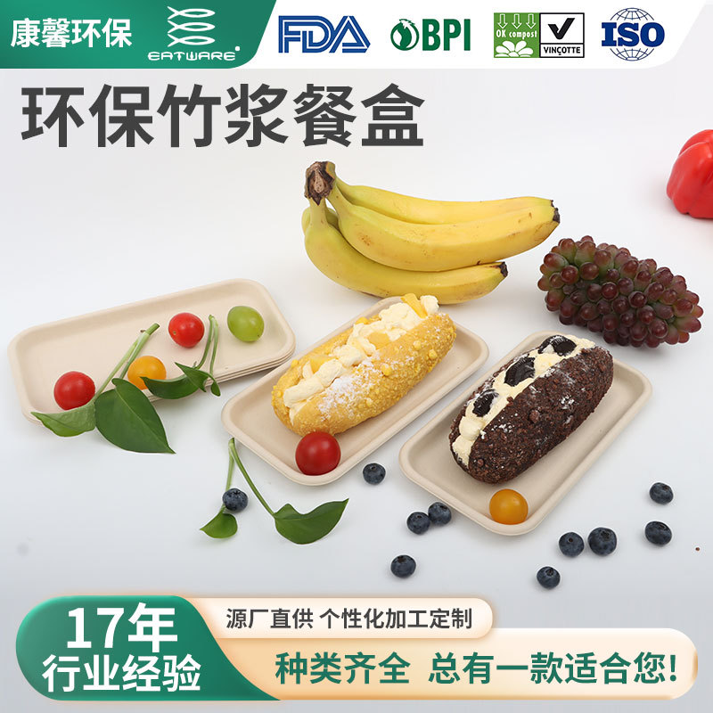 使い捨て分解可能な長方形パルプ食器皿堂食食器皿包装弁当箱食器野菜果物皿