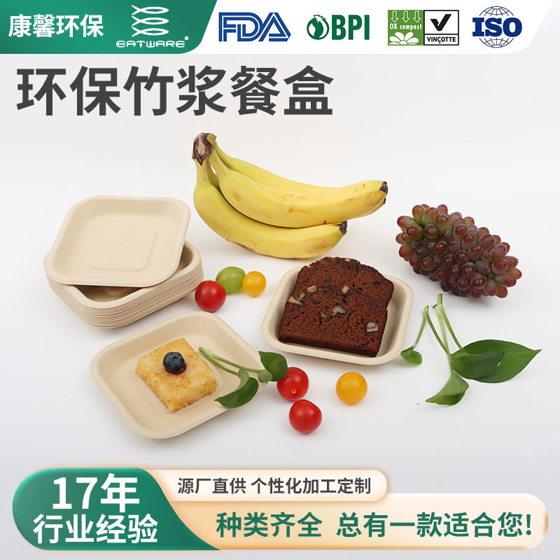 源工場食品級分解性角箱多格販売包装箱果物デザート弁当箱使い捨て