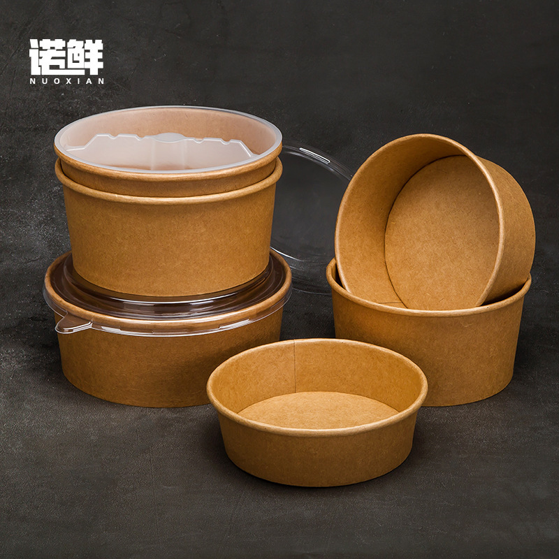 使い捨てクラフト紙ランチボックスサラダボウル円形テイクアウトボックス蓋付き耐熱スープボウル厚く分解可能