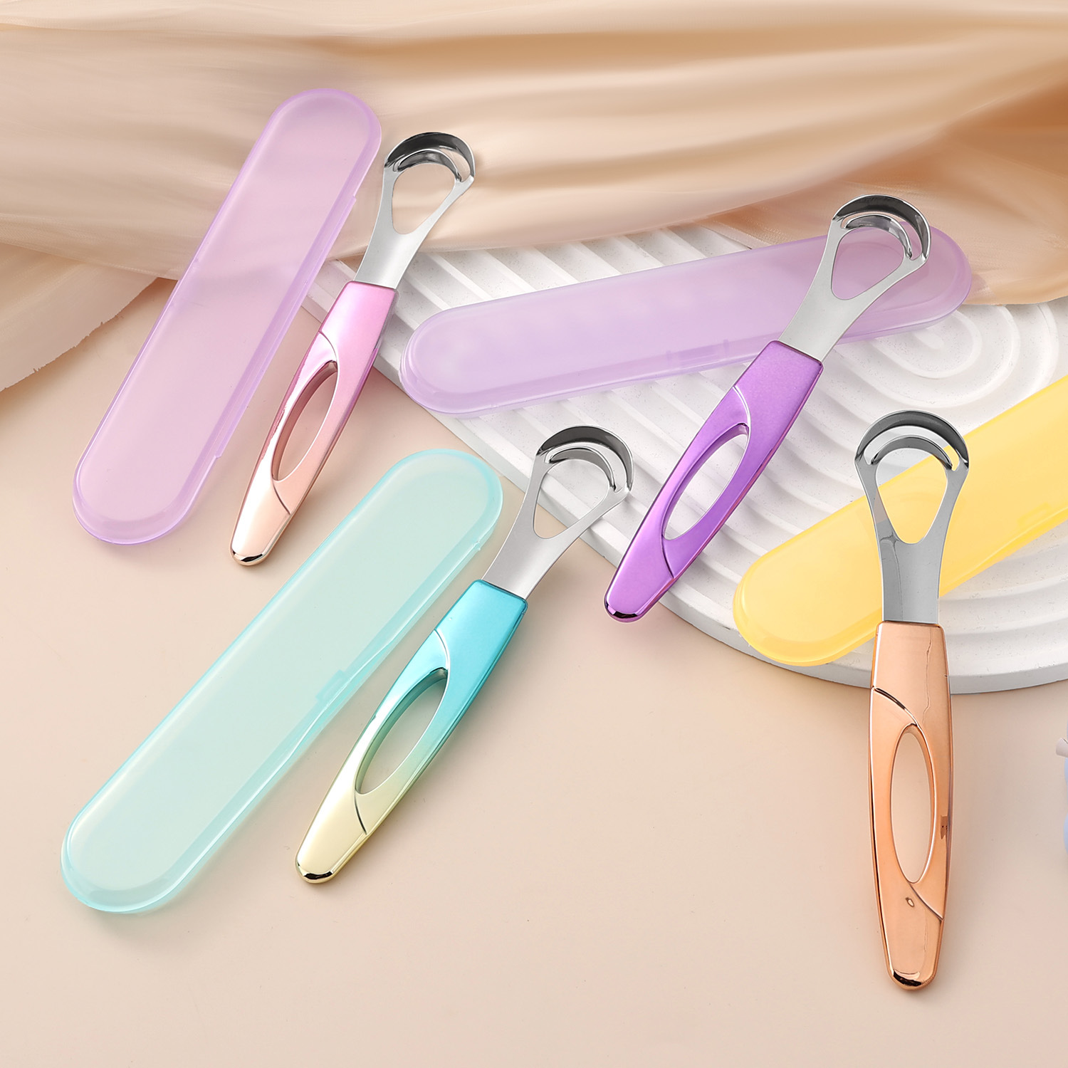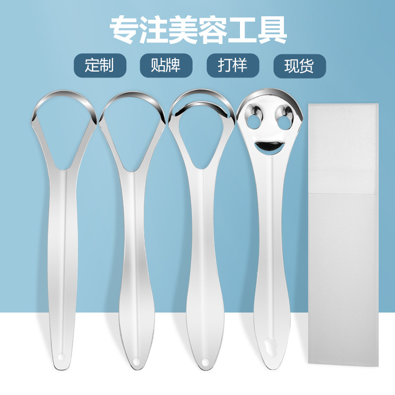 国境を越えた新しいステンレス製の舌掻き器大開口舌苔クリーナー二重の舌掻き板笑顔舌ブラシ