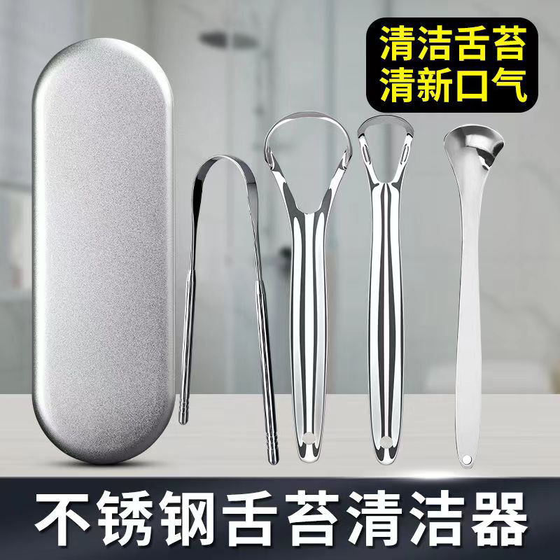 ステンレスu型舌掻き器大開口掻き苔クリーナー口臭除去口腔洗浄ツール鉄箱セット