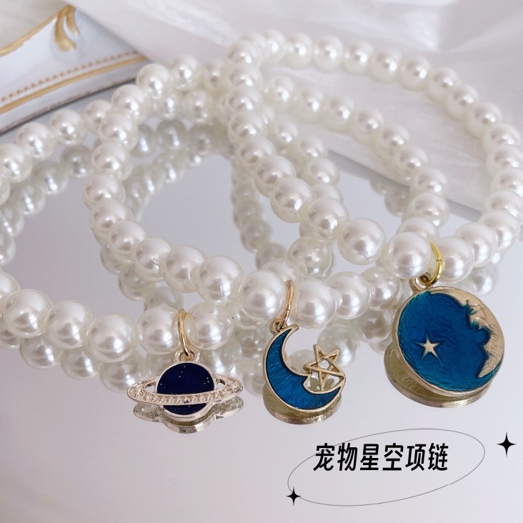新商品の猫が輝く星空の真珠のネックレスの犬の首輪はドイツ語の猫のアクセサリーのペットの首輪を飾ります。
