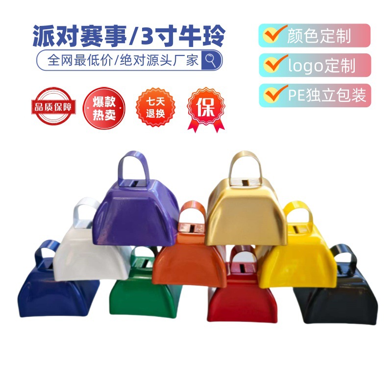 人気商品 3inch 牛玲イベントパーティー応援用 牛玲メタルスクエア型カウベル アウトドアハンドベル