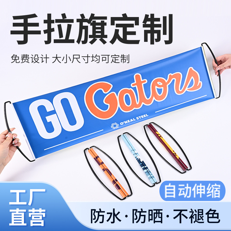 ハンドプルフラッグカスタムプルフラッグロゴ印刷ハンドヘルドマイクロビジネスカラー厚みのあるサテンバナー小さなバナープルフラッグ