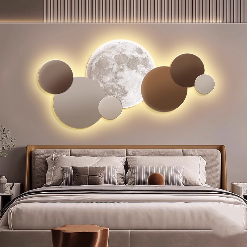 モダンでシンプルなリビングルームの装飾絵画クリエイティブムーンLED発光ライト絵画寝室のベッドサイドバナー吊り絵画ハイエンド