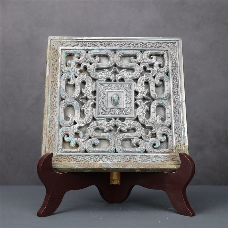 青銅透かし彫り龍紋鏡長さ17幅17厚さ1センチ