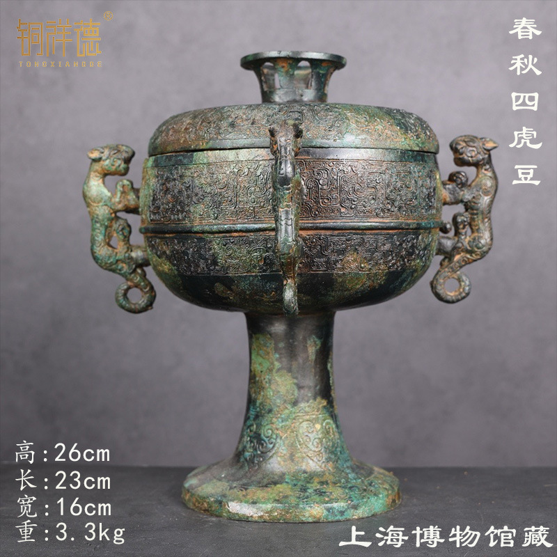 古青銅器置物四虎豆蟠龍紋豆盛食器漢式結婚式道具青銅豆礼器