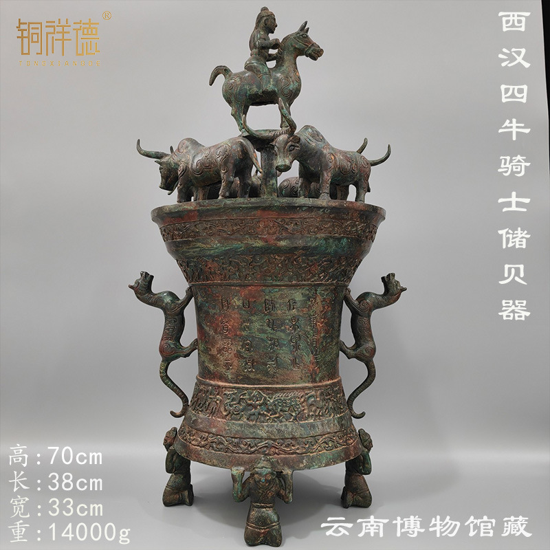 西漢四牛騎士青銅貯貝器高さ70センチ幅38センチ長さ33センチ重さ14キロ