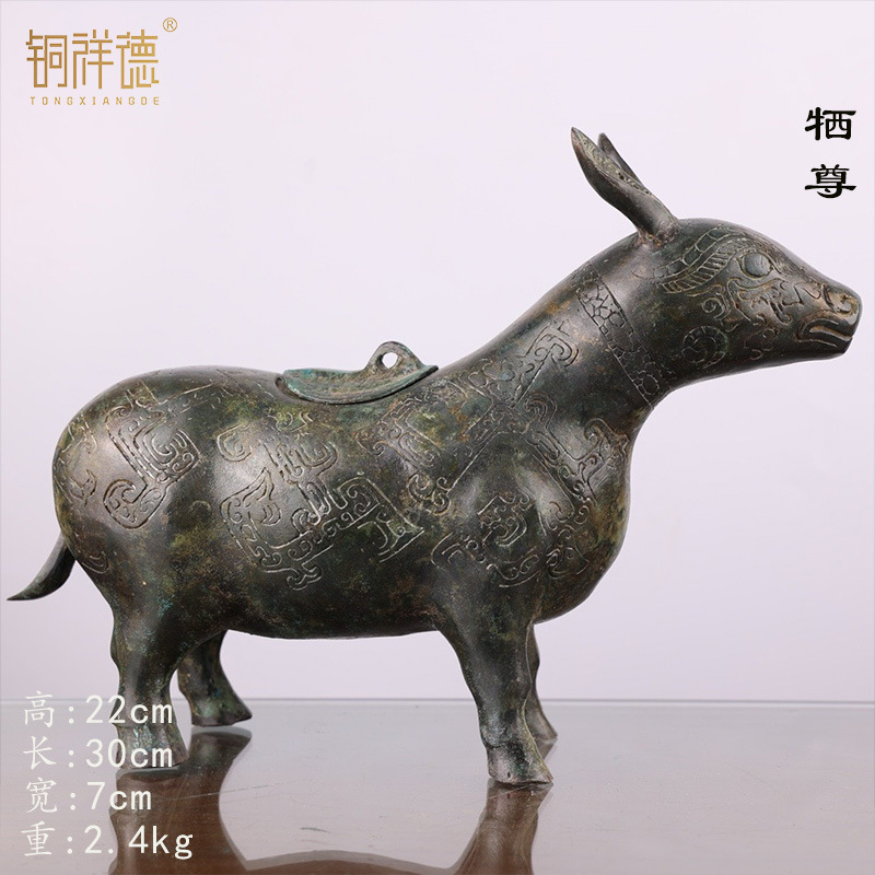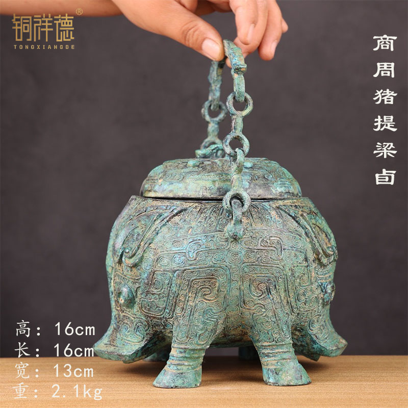 古青銅器豚提梁盛酒器青銅古遊工芸品展示室酒棚博古架青銅酒器