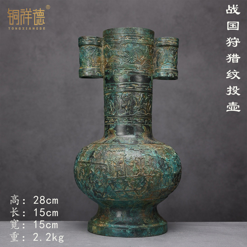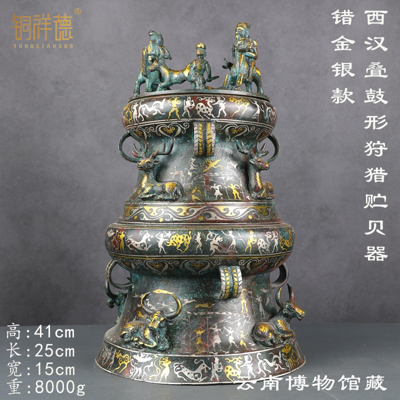 古青銅器戦国狩猟場面貯貝器純銅工芸品置物金と銀の工芸品をプレゼントします。