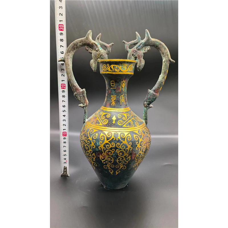 漢代 _ 青銅錯金双龍瓶重1400グラム、長さ21センチ、高さ30センチ