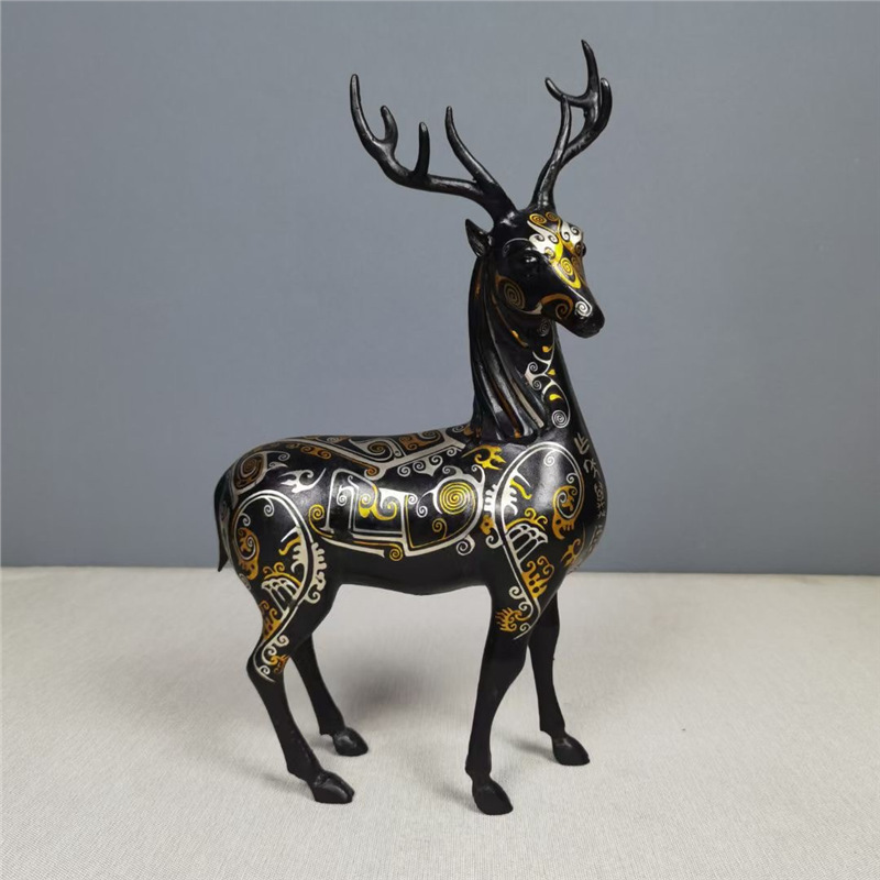 古青銅器の金と銀の鹿の置物の銅の鹿の置物の博古棚の収蔵品の工芸品の置物