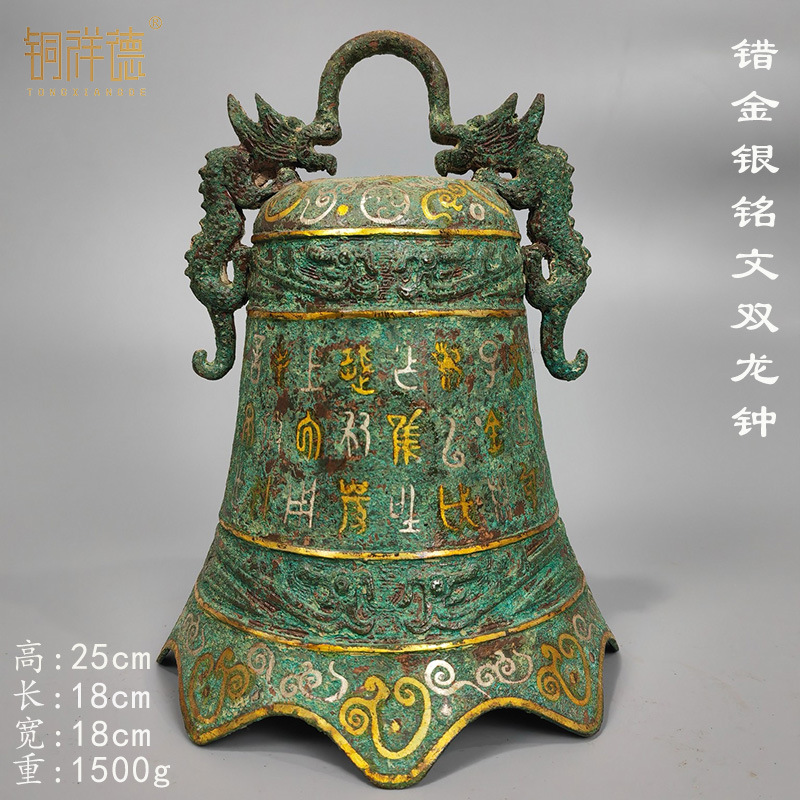 青銅の金と銀の双龍の碑文の編鐘の高さ: 25センチの幅: 18センチの重さ: 3斤