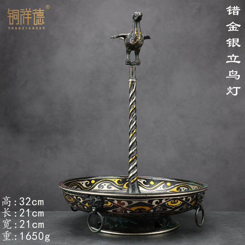 錯金銀古青銅器博物館コレクション置物錯金銀立鳥灯銅祥徳制作高級プレゼント