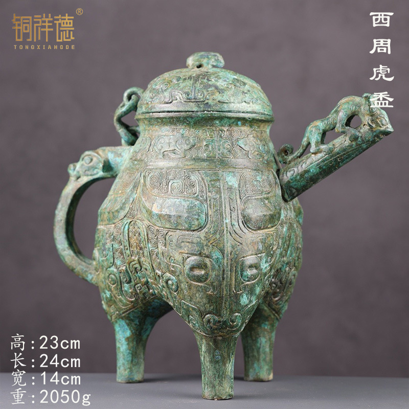 銅祥徳工芸古銅古青銅器置物古遊び戦国青銅臥虎鼎家居は古い贈り物をします。