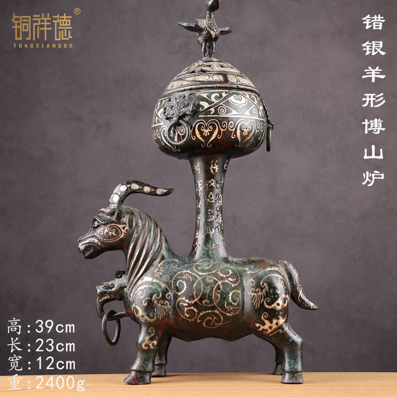 洛陽純銅漢代古青銅器薫炉置物博山炉ミス銀薫香炉家庭装飾道具品