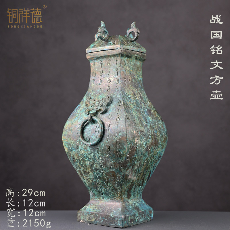 洛陽の漢代の青銅の碑文の方壺の銅のの酒の壺の置物の装飾の工芸品の中国式の復古はおもちゃを収集します。