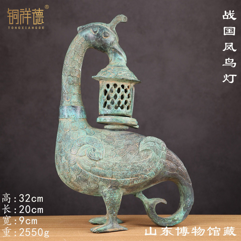 銅祥徳工芸戦国鳳鳥灯家具プレゼント青銅器置物骨董コレクション山東博物館蔵