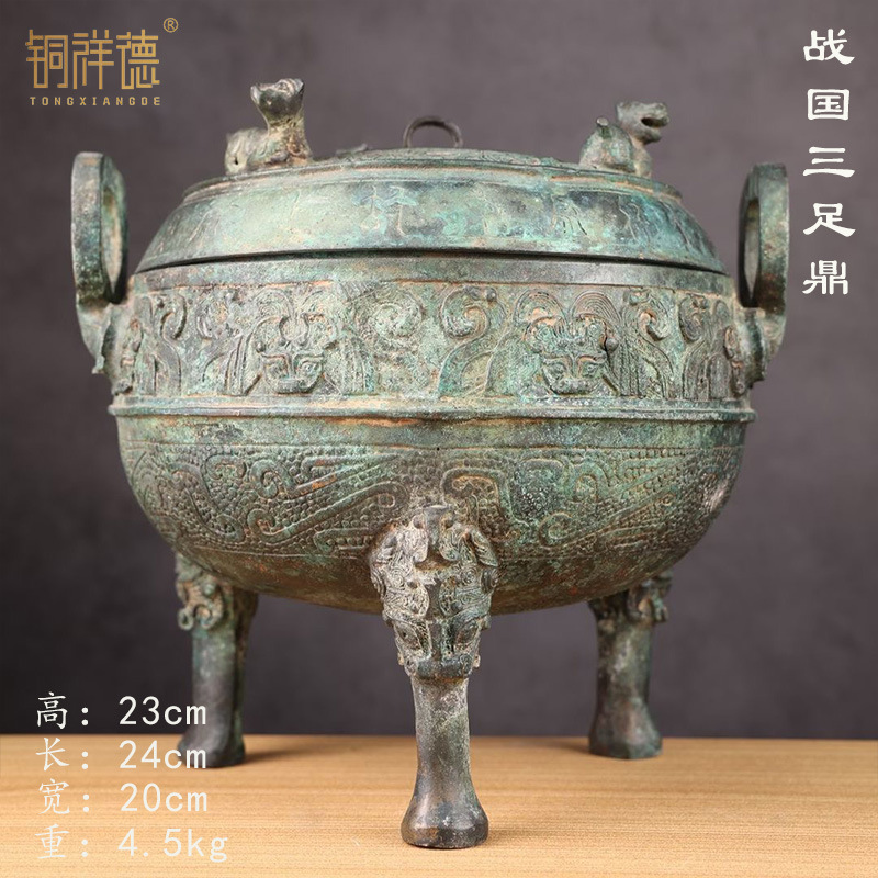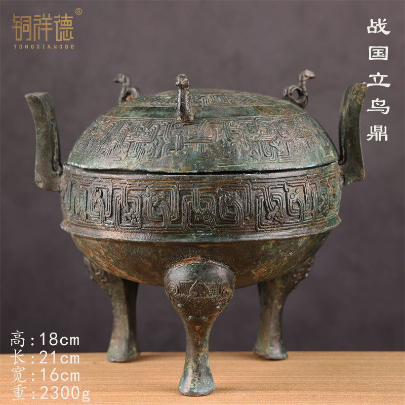 戦国交龍紋立鳥蓋鼎鼎置物開業プレゼント古鼎純銅材質高級プレゼント置物