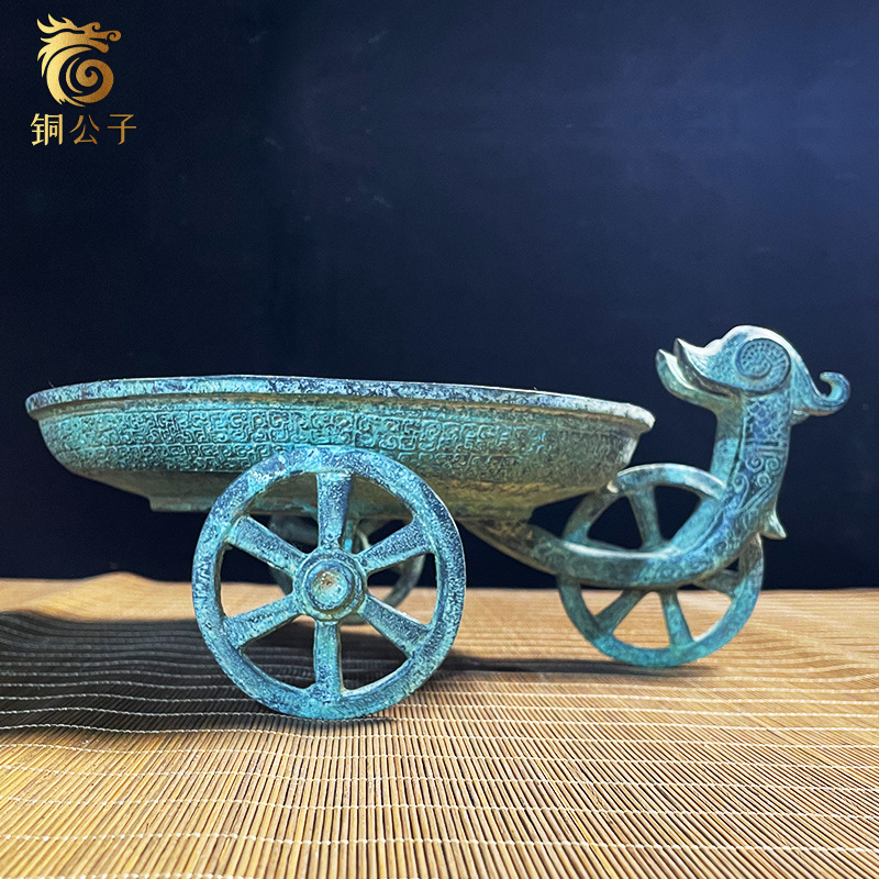 双獣三輪盤戦国青銅器模造工芸品置物コレクション洗面器銅盤中国古風装飾