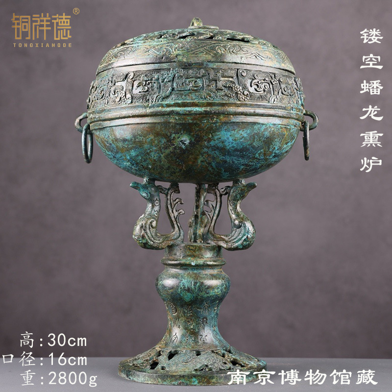 清代の竜紋香薫炉の骨董品は香を収集して炉の南京の博物館のチベットの家庭の高級な贈り物の件を収集します。