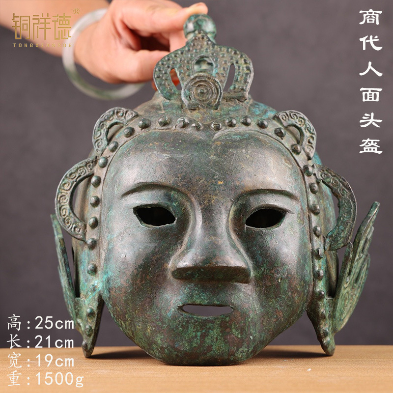 銅祥徳古青銅器商代人面ヘルメット映画道具骨董コレクション博物館展示芸術品
