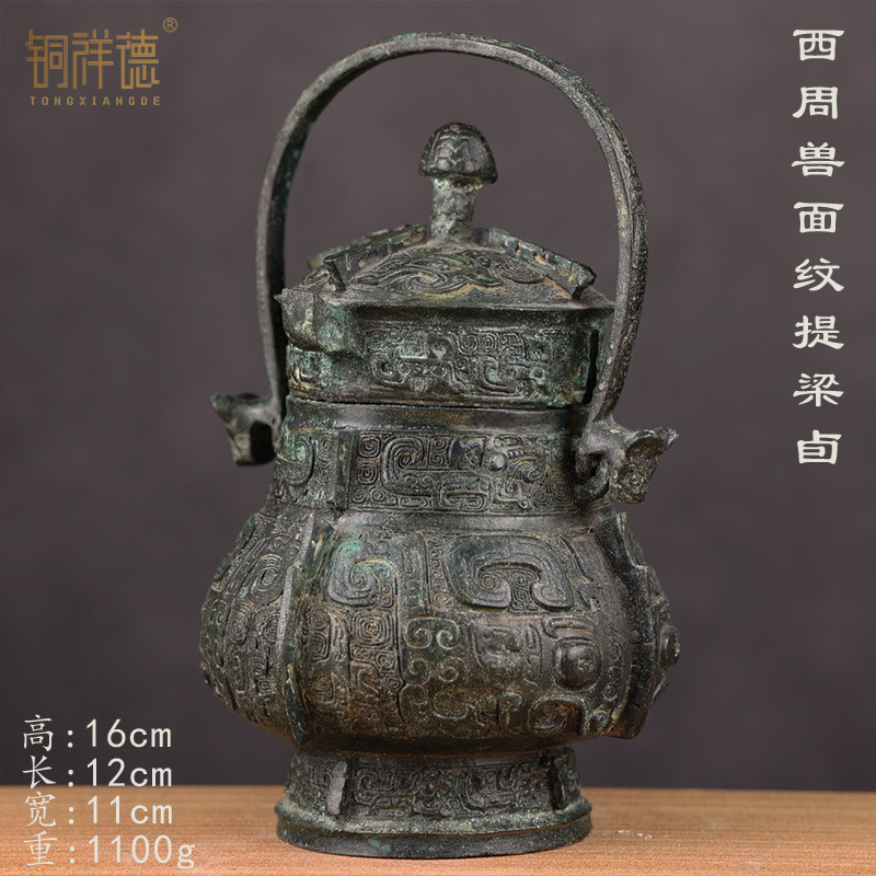 西周獣面紋提梁青銅器置物古金金金影道具古代青銅礼器酒器