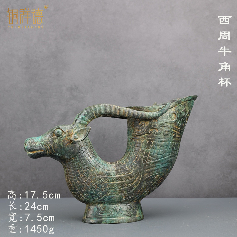 青銅器古牛頭杯牛角杯十二生肖牛置物牛樽酒樽帝王杯古代杯