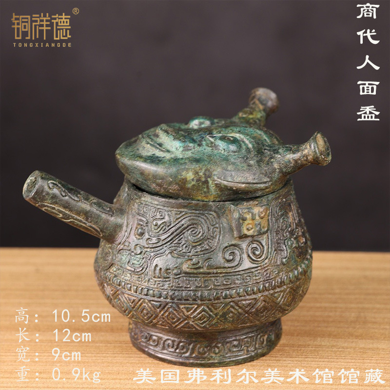 銅祥徳古青銅器商代人面殷墟からの青銅器酒器博物館の展示芸術品