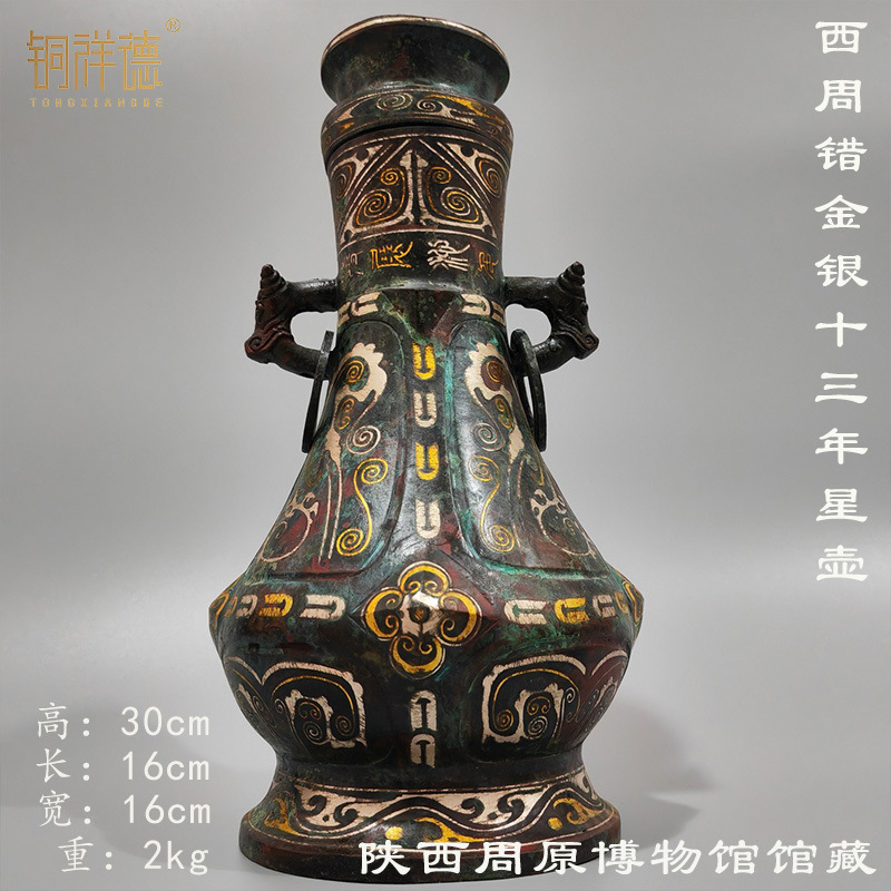 古青銅器の銅の壺の置物の西周の中期は金と銀の十三年の星の壺の博物館の骨董品を間違えて収集します。