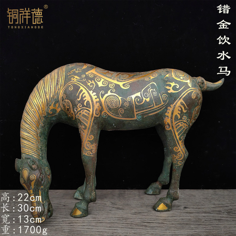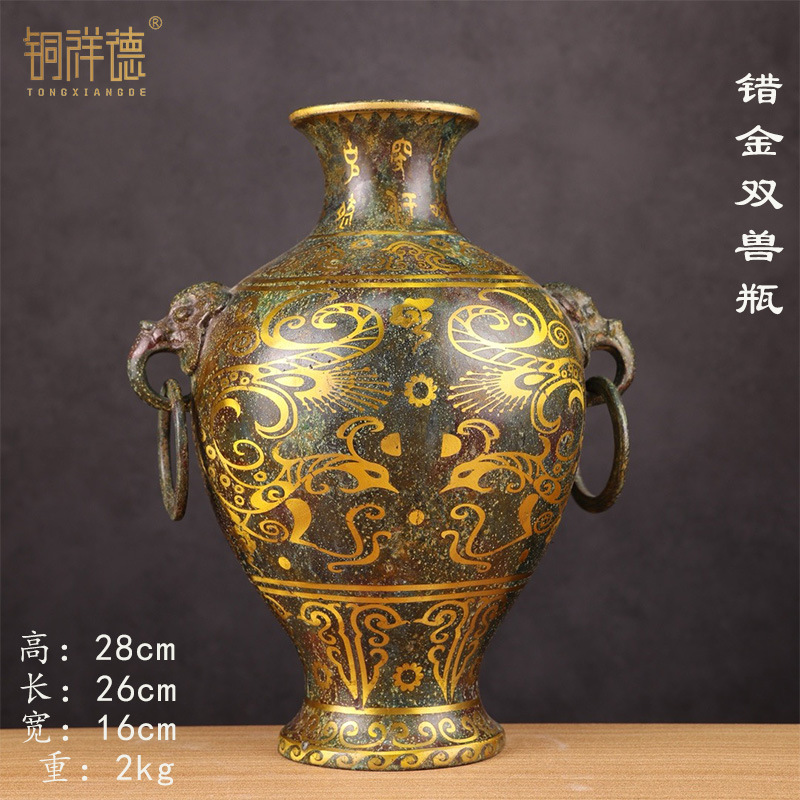 古青銅器の間違った金の置物は旧工芸盛酒器獣面双耳瓶博物館の復刻収蔵品です。
