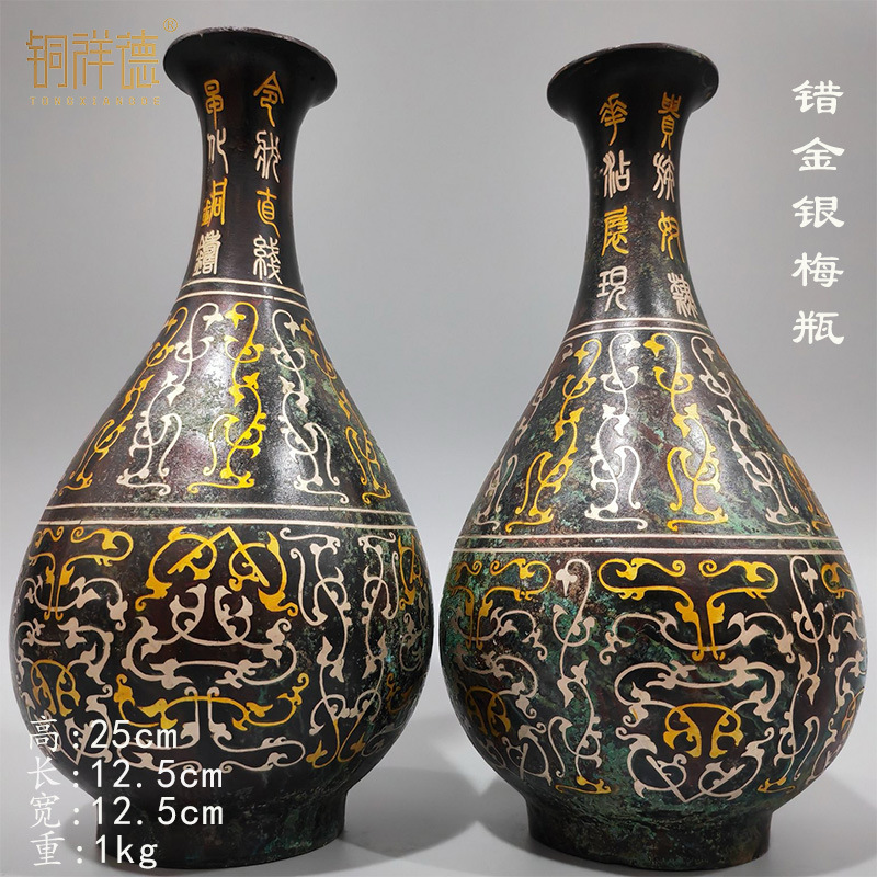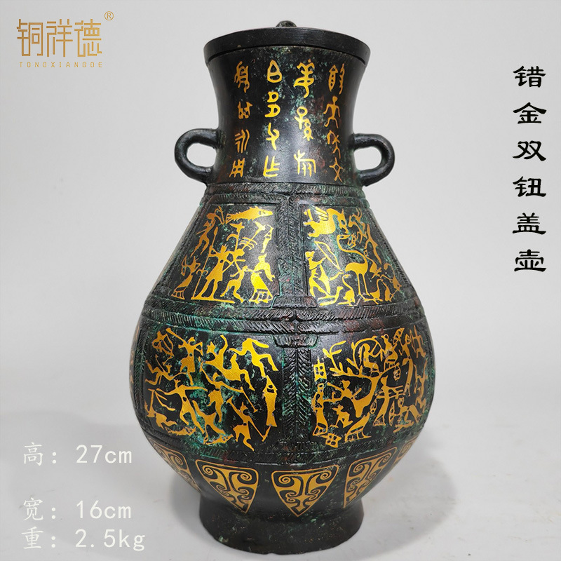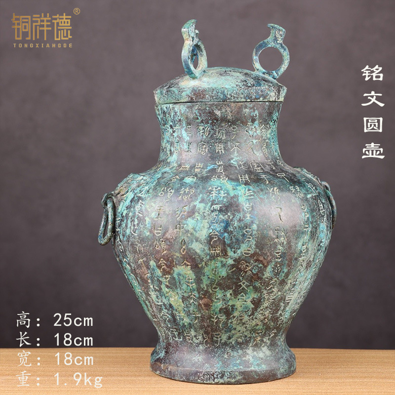 古青銅器碑文双環瓶蓋付き銅壺盛酒器レトロ家庭工芸品置物