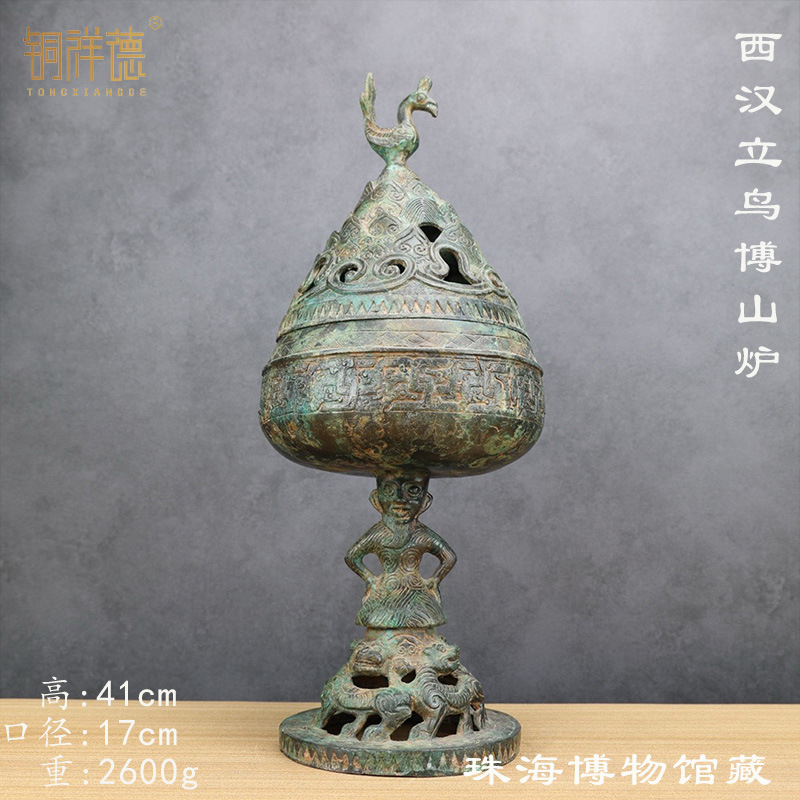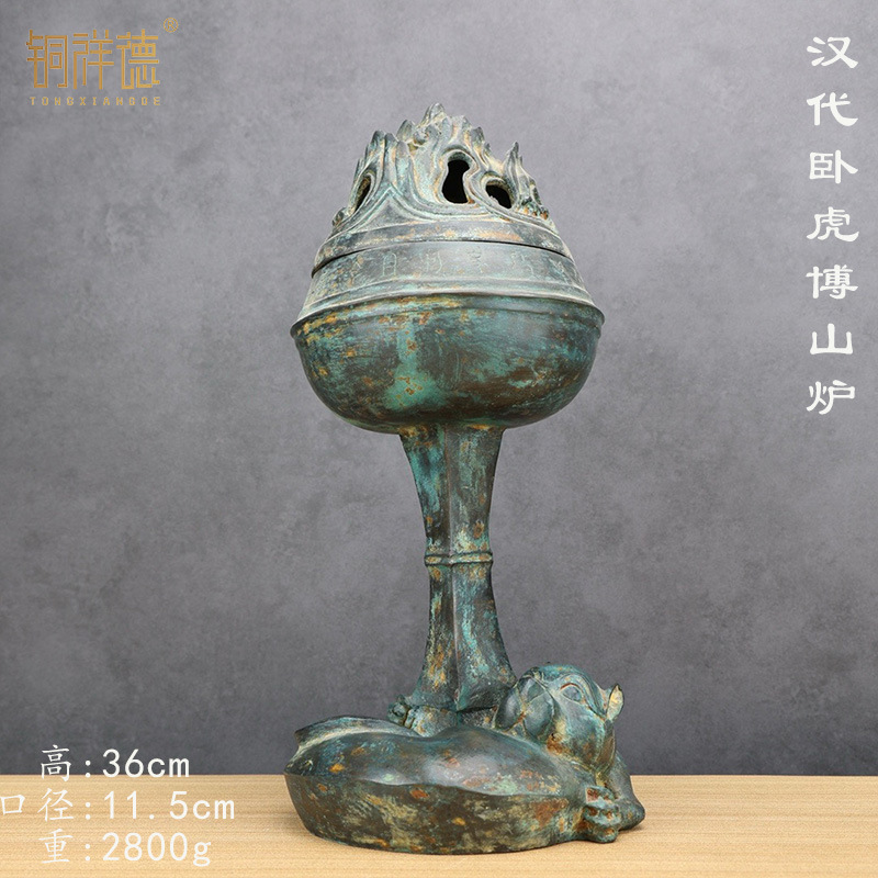 青銅器古置物臥虎博山炉家庭用薫炉香炉純銅家庭装飾品骨董品コレクション