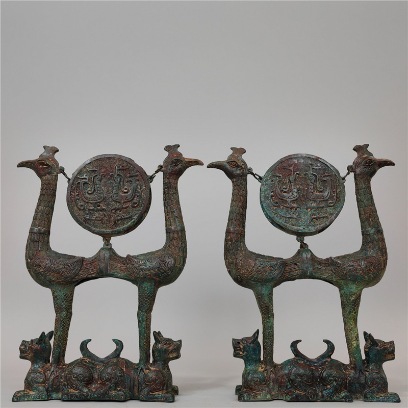 戦国虎座鳳架鼓古青銅器古代楽器双鳥鼓架鳳鼓ソフト装飾品映画とテレビの道具