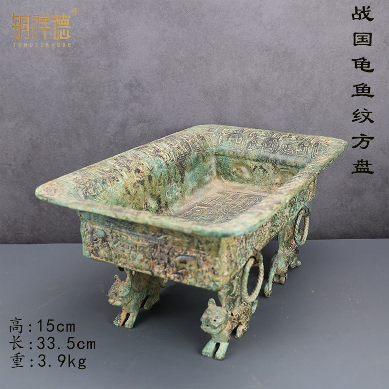 戦国青銅亀魚紋角盆高さ13センチ長さ29.5センチ幅18.6センチ重さ6.3斤
