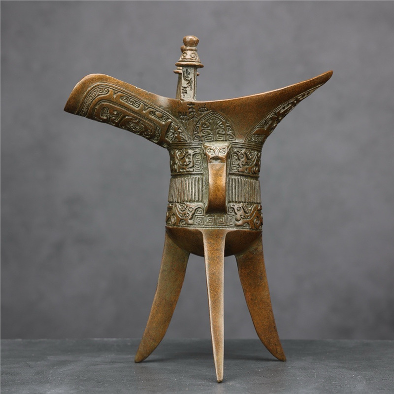 陝西周原博物館復刻紫銅材質商父辛爵高さ20.17幅8装飾家庭装飾品