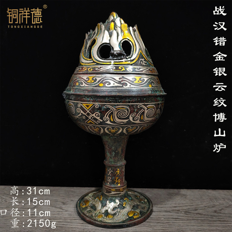 青銅の金と銀の博山炉の銅炉の元祖の薫炉の置物の客間の寝室の事務室の書斎の装飾品