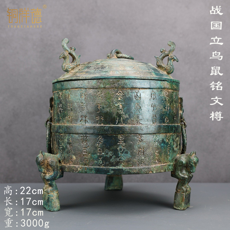 戦国立鳥鼠足銘文立鳥神獣樽古代酒樽食器工芸品中国式装飾置物