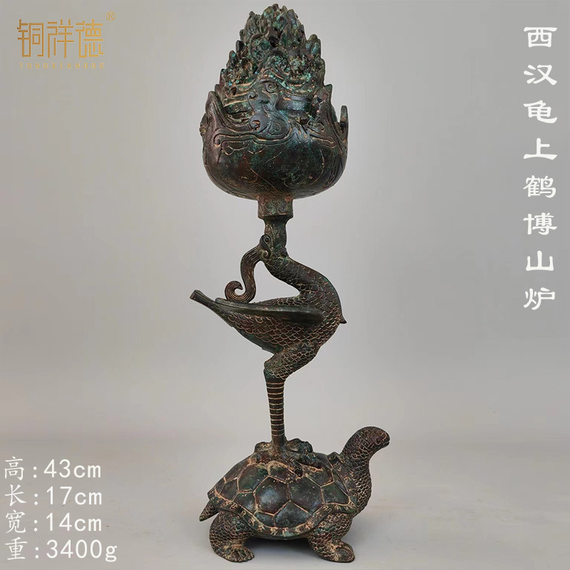 西漢時代の亀鶴延年銅博山炉博物館の骨董品コレクションの薫香置物銅祥徳製造