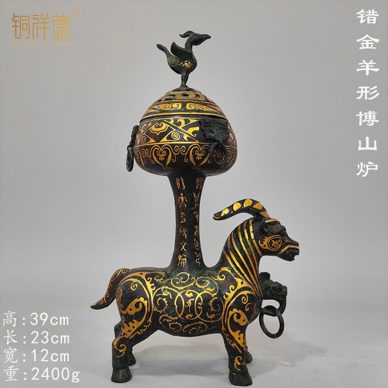 青銅錯金羊型立鳥薫炉香炉薫炉高さ39センチ長さ23センチ幅12センチ