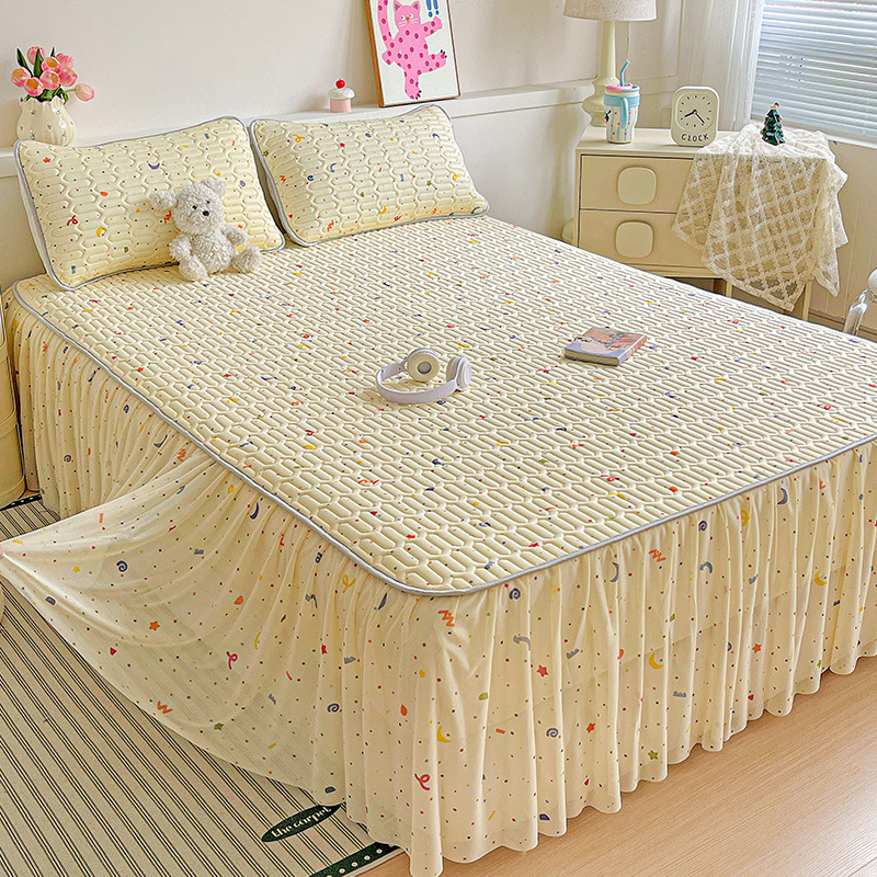 夏のラテックス氷糸凉席三点セットベッドスカート家庭用水洗い可能シングルエアコン席プリンセス風純色レース