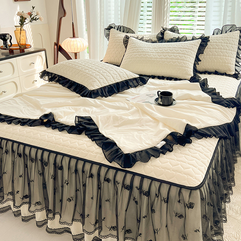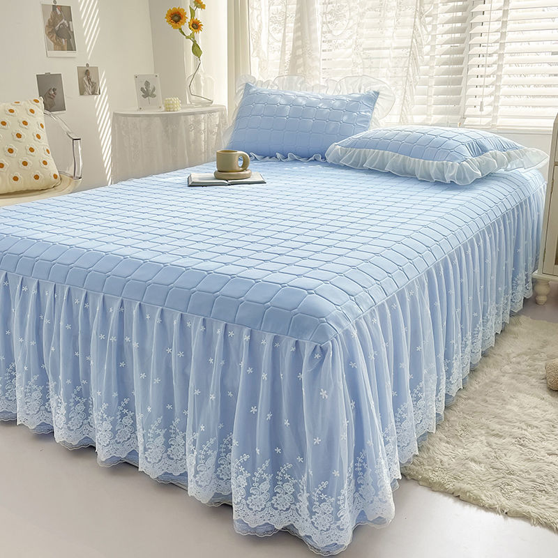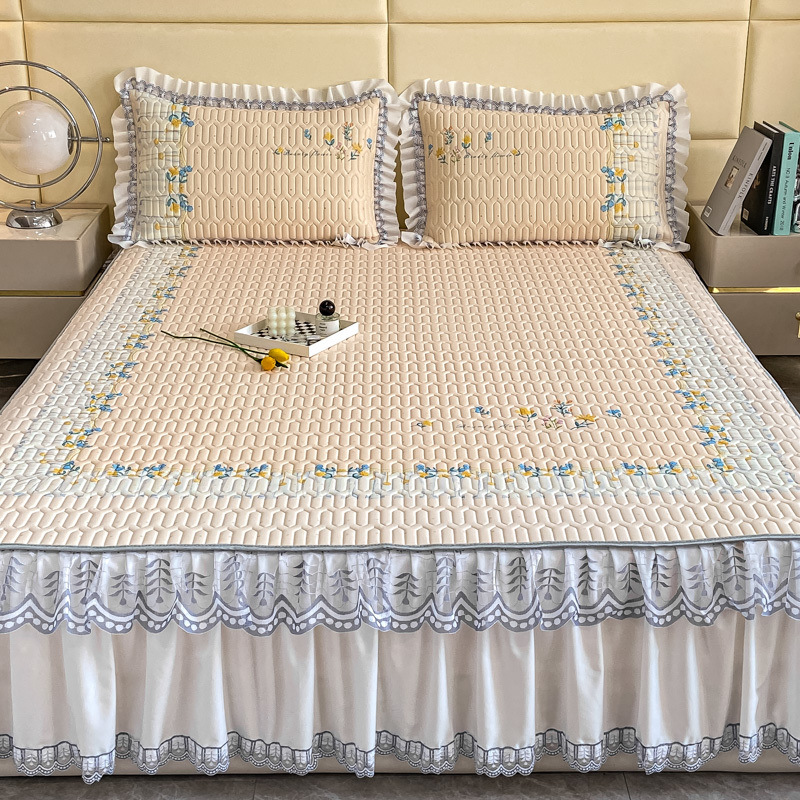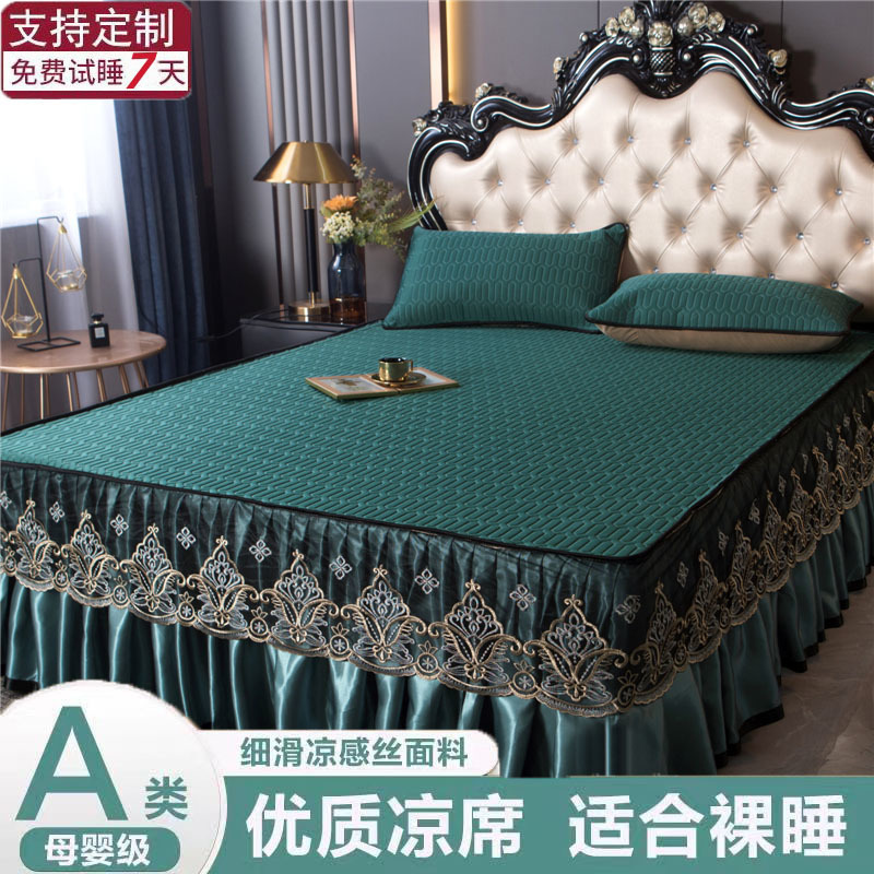 夏ラテックス氷糸凉席ベッドスカート3点セット純色レースエッジプリンセス風水洗い可能エアコンソフト新製品